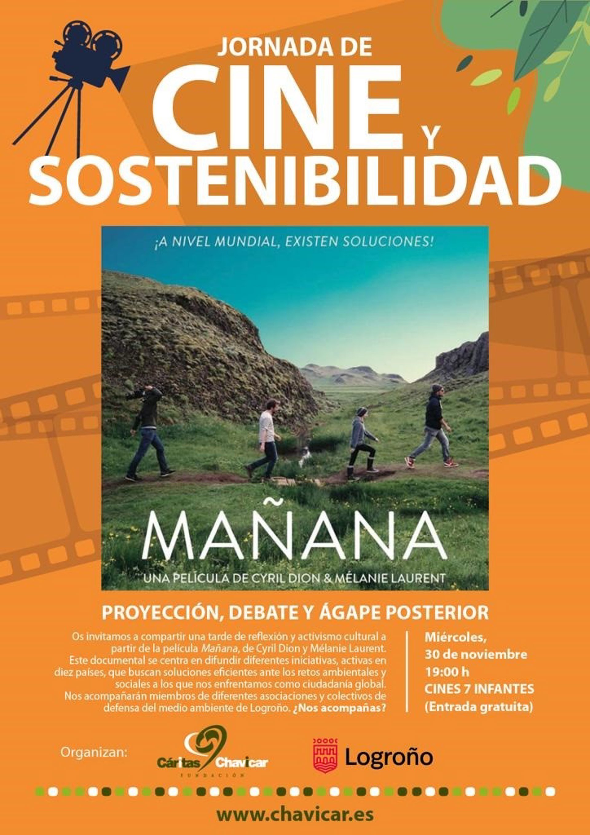 El Ayuntamiento de Logroño y la Fundación Cáritas Chavicar han organizado una jornada de Cine y Sostenibilidad que tendrá lugar mañana, a partir de las 19,00 horas en los cines 7 Infantes y que incluirá la proyección del documental 'Mañana', así como un debate y un ágape posterior.