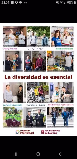La campaña 'La diversidad es esencial' quiere reconocer también en este momento la importancia de la diversidad de culturas y orígenes existentes en Logroño, esencial para que la ciudad haya seguido avanzando en estos meses de estado de alarma. Para visibilizarlo se han realizado retratos de personas de Logroño que son logroñeses de nacimiento y logroñeses de orígenes diversos y que trabajan en profesiones que han sido declaradas esenciales".