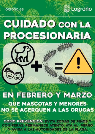 Desde el servicio de Parques y Jardines del Ayuntamiento de Logroño, se pone en marcha en los meses de febrero y marzo una campaña de prevención y lucha contra la procesionaria en las zonas verdes de la ciudad.