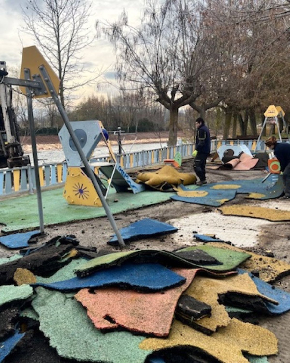 En la primera jornada, los operarios han empezado a retirar el suelo antiguo y a preparar la base para la instalación del nuevo pavimento, que mejorará las condiciones de seguridad, comodidad y durabilidad de la zona.