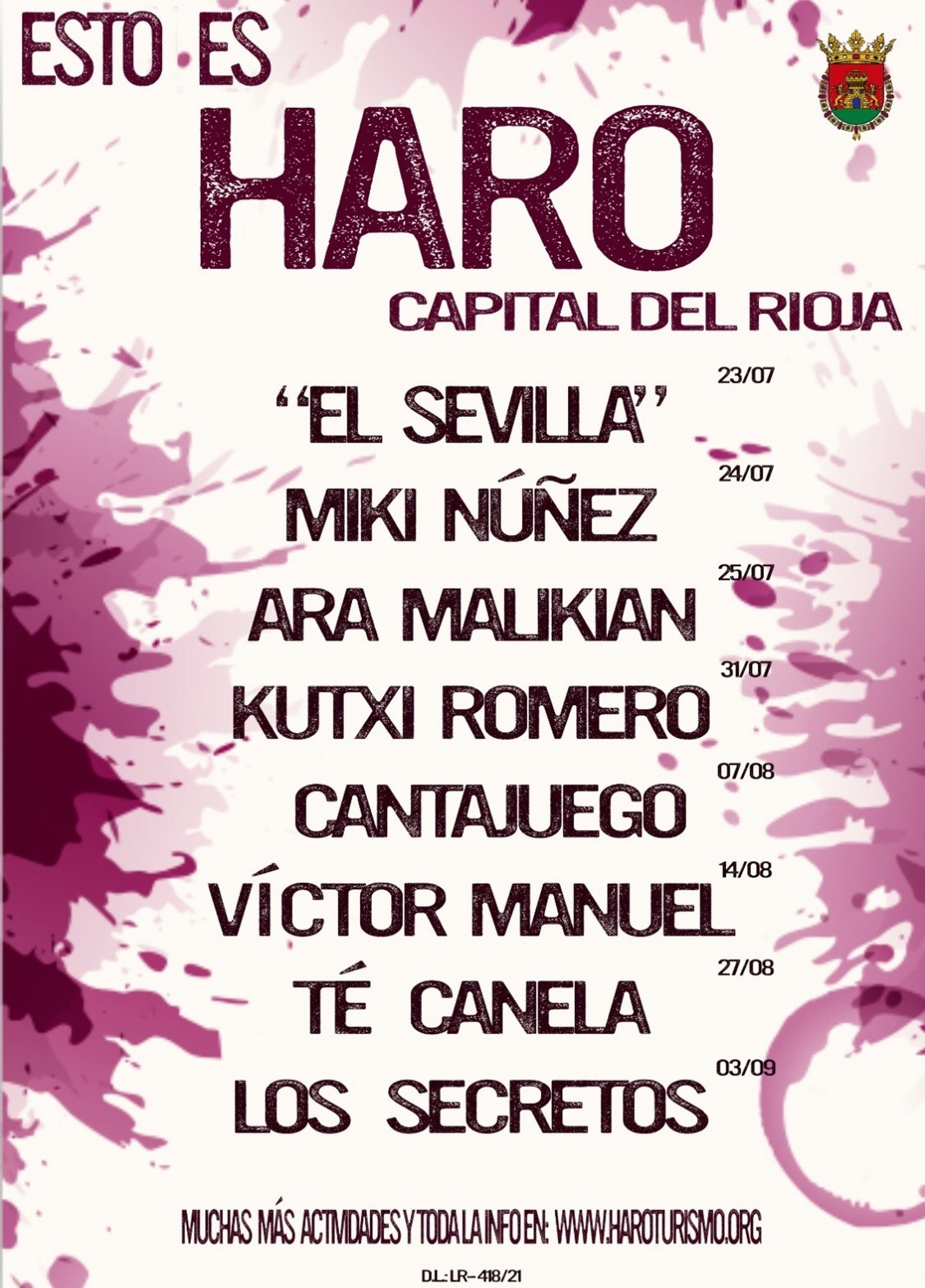 La mayoría de estas actuaciones tendrán lugar en la Plaza de Toros de Haro con todas las medidas de seguridad y control necesarias. En los próximos días se dará a conocer la programación al completo así como los precios de cada uno de los eventos, venta de entradas y bonos y los horarios de cada espectáculo.
