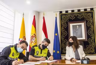 La alcaldesa de Villamediana, Ana Belén Martínez, ha dado la bienvenida a los dos funcionarios en un acto celebrado en el Salón de Plenos del Ayuntamiento, en el que también han asistido los concejales Enrique San Román y Rubén Saénz León.