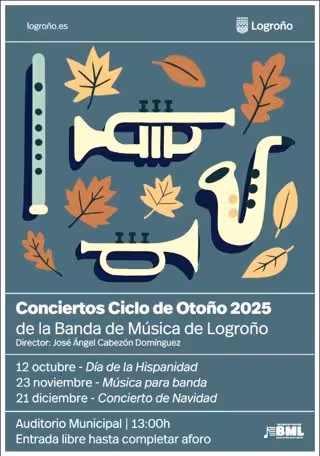 La Banda de Música de Logroño, bajo la dirección de José Ángel Cabezón Domínguez, inaugura este domingo, 12 de octubre, su Ciclo de Otoño 2025 con un concierto especial con motivo del Día de la Hispanidad.