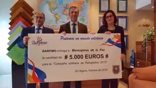 La fundación 'Mensajeros de la paz' ha agradecido expresamente a los trabajadores del grupo BARPIMO su contribución, así como el esfuerzo realizado, gracias al cual podrán ayudar a las familias que huyen del horror, y en su marcha sólo encuentran hambre, sufrimiento e incluso a veces la muerte.