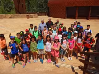 El consejero de Educación, Cultura y Turismo, Abel Bayo, ha visitado este viernes 'El Barranco Perdido' junto a un grupo de escolares de la comunidad que se encontraban pasando el día en el parque de paleoaventura, que esta temporada ha ampliado el Circuito de Multiaventura y ha estrenado una nueva supertirolina de más de 200 metros.