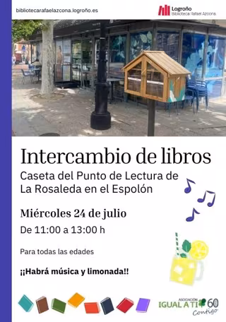 La Biblioteca Rafael Azcona organiza mañana un gran intercambio de libros en la caseta del punto de lectura de La Rosaleda - AYUNTAMIENTO DE LOGROÑO