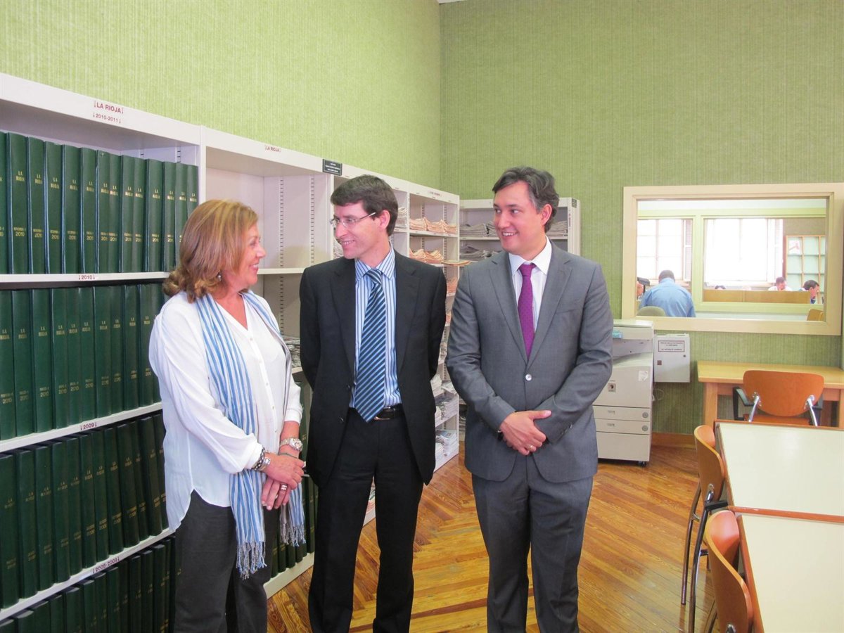 Capellán, acompañado del director general de Cultura, José Luis Pérez Pastor, y de la directora de la Biblioteca de La Rioja, Alicia Ruiz, ha inaugurado esta mañana estas nuevas instalaciones, entre las que se encuentran una ampliación de la Hemeroteca, una Sala de Conferencias y una sala para los Clubes de Lectura.