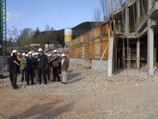 La presentación del proyecto, además del propio Sanz, la han realizado el consejero de Agricultura, Íñigo Nagore, y los responsable de la obra y de la geotermia, Juan Herranz y Jesús Ilarraza. La bodega se enmarca en el futuro complejo del Instituto de las Ciencias de la Vid y el Vino.