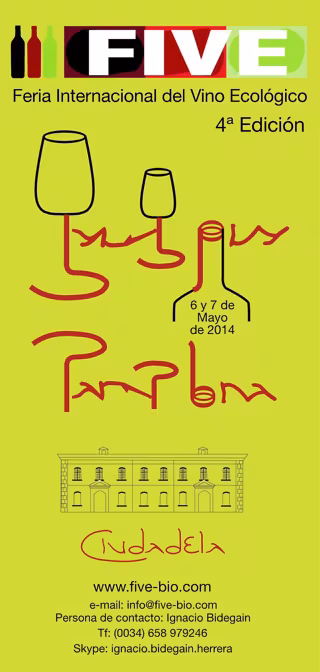 Los próximos días 6 y 7 de mayo se celebra en Pamplona la 4ª edición de FIVE, la Feria Internacional del Vino Ecológico. El evento está organizado por los bodegueros ecológicos inscritos en AEN (Asociación de Empresas de Agricultura Ecológica de Navarra). Esta última edición estará cargada de novedades como la presencia por primera vez de Italia o una demostración de showcooking en la degustación pública.
