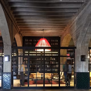 La experiencia 'Beber Entre Líneas' sorprende al visitante con rincones como la biblioteca de la sala de barricas, donde reposan vinos y libros, o lo que ya se conoce en la zona como 'La Catedral del Vino': 7 depósitos de hormigón de 13 metros de altura donde el artista australiano Guido Van Helten interpretó en forma de enormes murales la fusión de las culturas del vino y de la literatura.