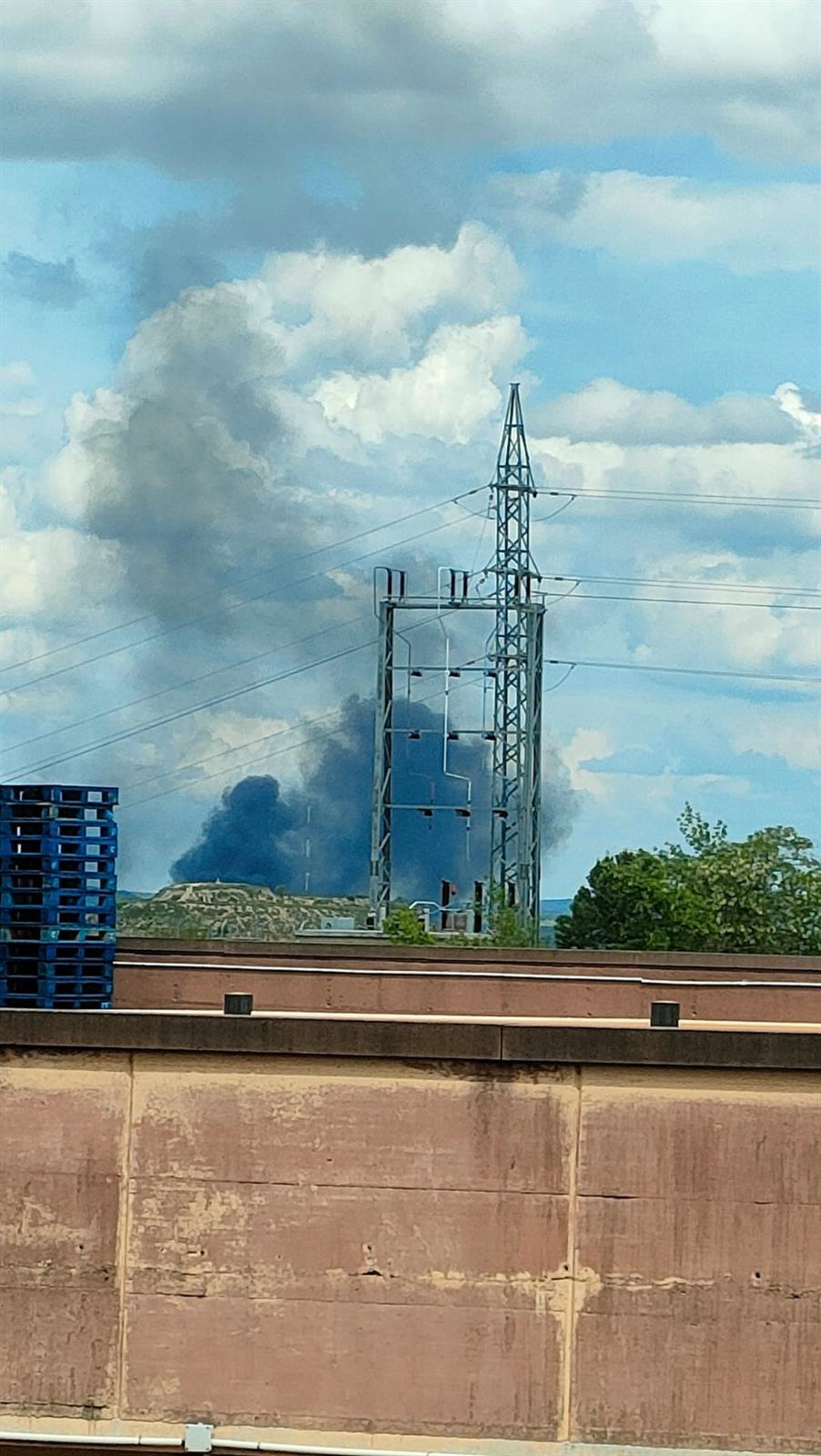 Columna de humo, visible desde Logroño, del incendio en una fábrica de barnices de Oyón - EUROPA PRESS