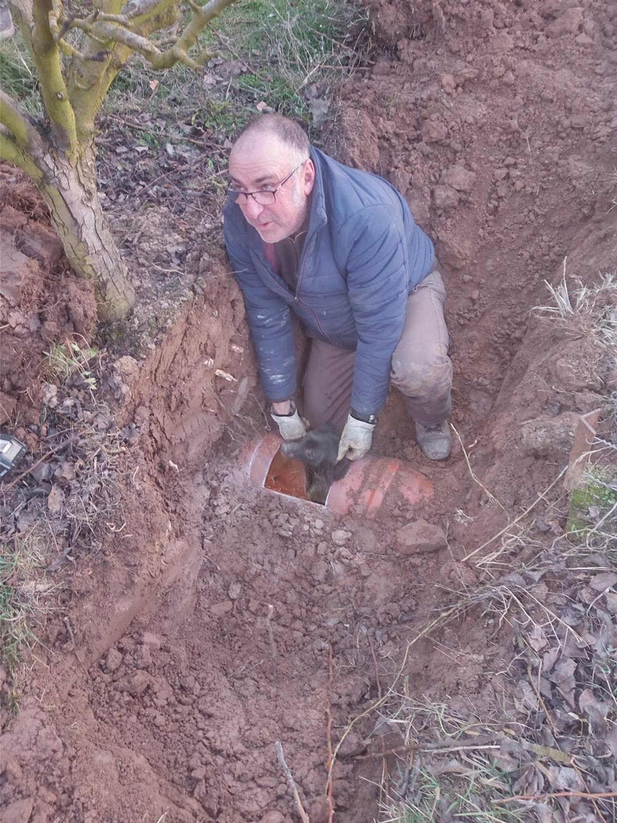 Dado que se encontraban en el interior de una tubería muy estrecha y de difícil acceso, a un metro de profundidad, aproximadamente, fue necesario el apoyo de una máquina retroexcavadora, propiedad del dueño de los animales, para poder acceder al conducto.