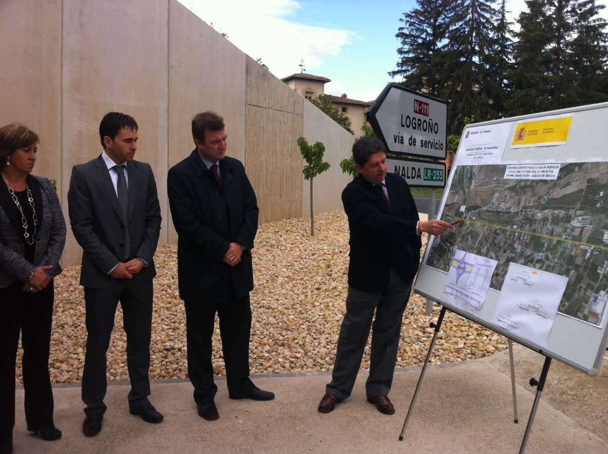 Bretón ha realizado estas manifestaciones, acompañado del jefe de Demarcación de Carreteras del Estado, Enrique García, tras visitar esta mañana las obras de construcción de enlace y vías de servicios de la N-111, en el tramo de Nalda y Albelda de Iregua, tras su reciente finalización y apertura al tráfico.