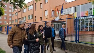 Bretón, acompañado de varios miembros de su formación, ha dado a conocer las medidas de conciliación familiar y materia educativa, junto al CEIP 'Gonzalo de Berceo' de Logroño.