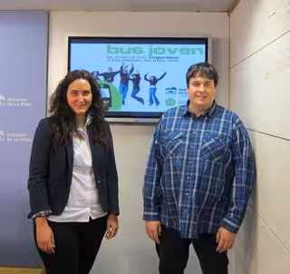 La directora del Instituto Riojano de la Juventud (IRJ), Mariate Antoñanzas, acompañada por el concejal de Festejos de Santo Domingo, Carlos Barrón, ha presentado esta mañana la reedición del 'Bus Joven'. Este servicio, llevado a cabo desde 2008, permite a los jóvenes viajar, de forma segura, a las fiestas de Logroño y cabeceras de Comarca.