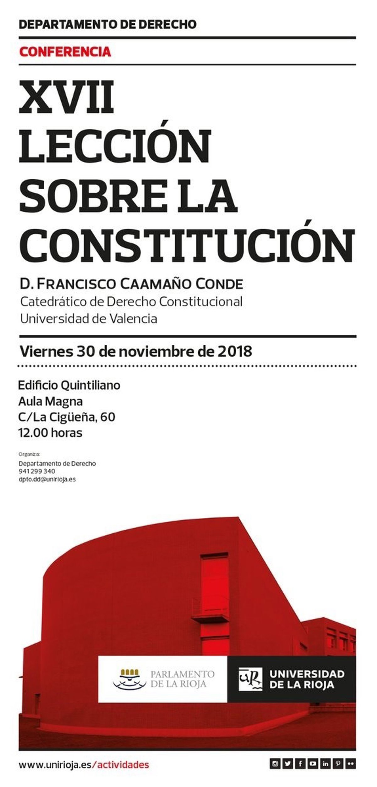 Caamo ha ofrecido una lección sobre la Constitución en el Aula Magna del Edificio Quintiliano de la Universidad de La Rioja. En declaraciones anteriores a los medios de comunicación ha creído que la Carta Magna "ha sufrido desgastes".