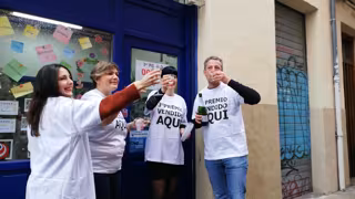 Archivo - Los responsables de la Administración de Lotería n 10, de Pamplona, celebran haber repartido el tercer premio de la Lotería de Navidad de 2019 - EUROPA PRESS - Archivo