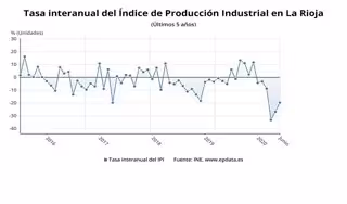 El Índice General de Producción Industrial (IPI) descendió un 19,7 por ciento en La Rioja, en el mes de junio en comparación con el mismo mes del año anterior, según ha informado este viernes el Instituto Nacional de Estadística (INE).
