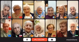 Nunca antes se había logrado reunir a tantos centenarios en una videollamada. Para hacerlo posible, la startup de móviles para mayores 'Maximilana' envió a cada centenario un móvil para que pudieran conectarse de forma sencilla y adaptada a la videollamada.