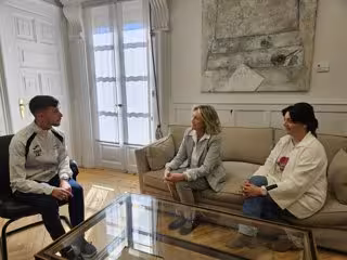 La alcaldesa de Calahorra, Mónica Arceiz, ha recibido al joven atleta calagurritano Sebastián Pérez en su despacho, tras obtener el segundo puesto en el Campeonato de España de Atletismo de la FEDDI (Federación Española Deportes Discapacidad Intelectual) el pasado 28 de abril en Valencia.