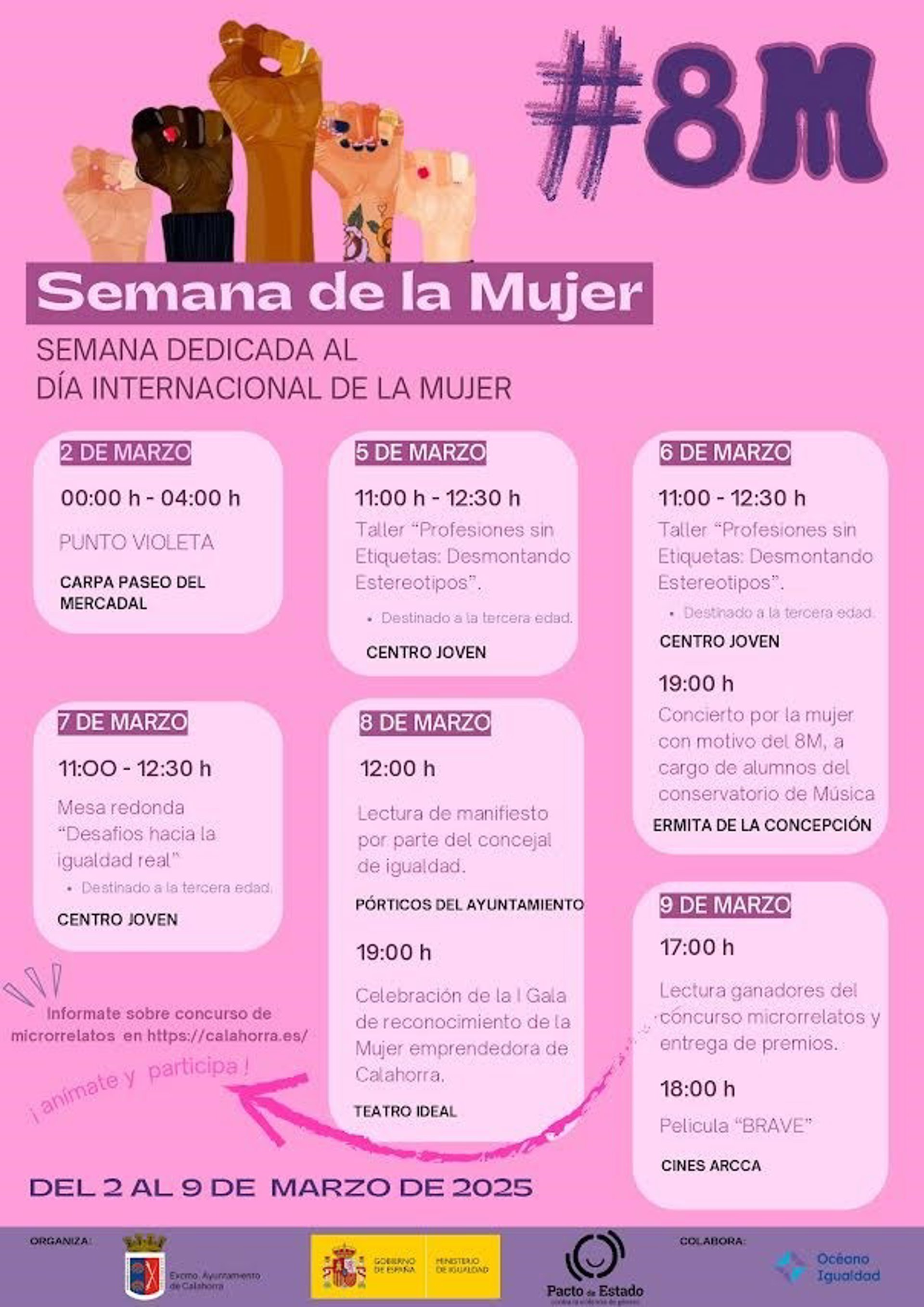 El Ayuntamiento de Calahorra ha programado hasta nueve actividades desde este domingo, 2 de marzo, hasta el día 9, con motivo de la conmemoración del 8M, Día Internacional de la Mujer