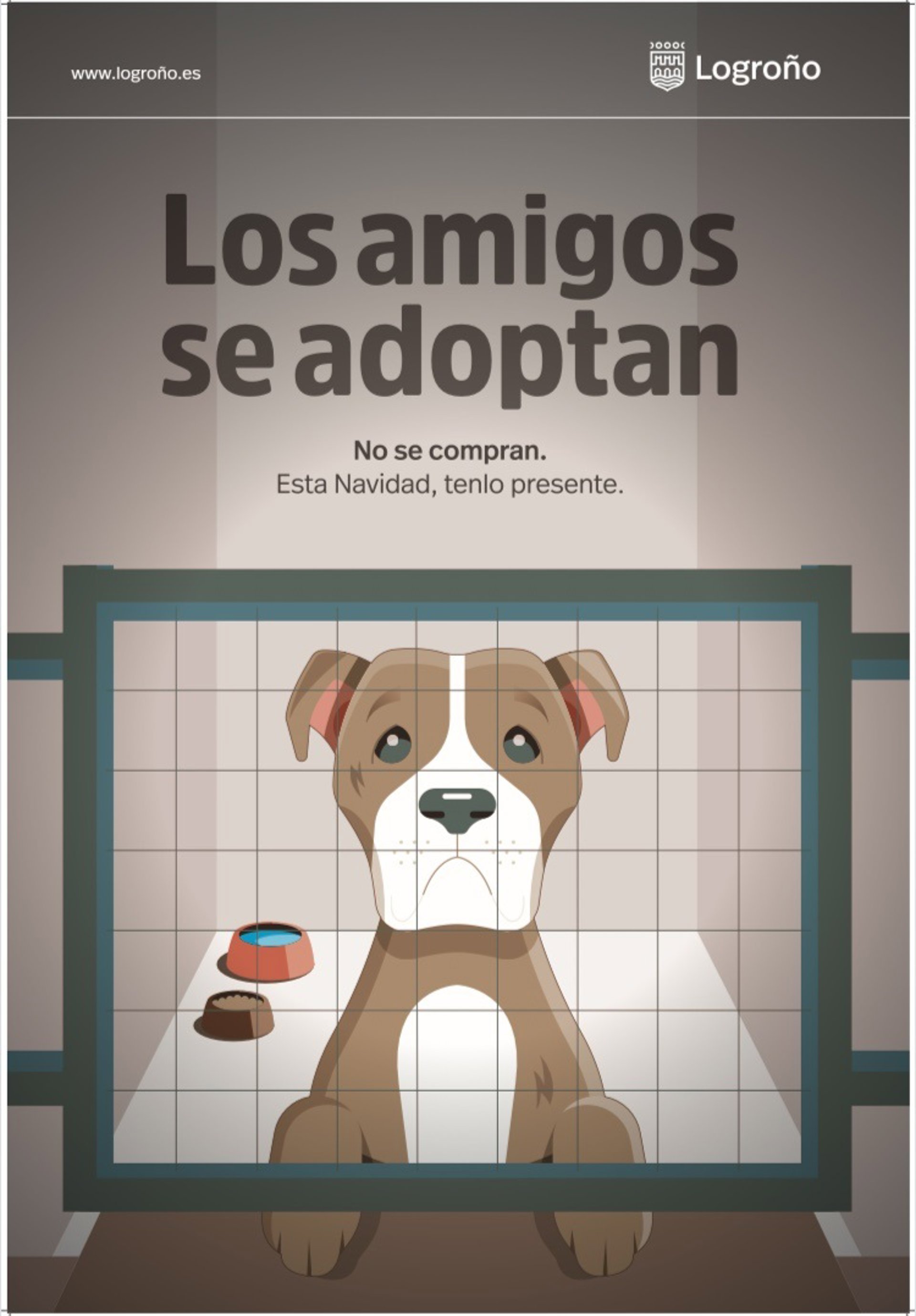 Una campaña del Ayuntamiento de Logroño pedirá, durante Navidad, que "es mejor adoptar que comprar y hay que cuidar a los animales", para evitar el maltrato y erradicar los abandonos tras estas fiestas.