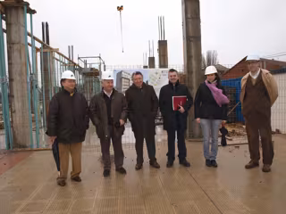 El alcalde de Logroño, Tomás Santos, y el concejal de Vivienda, José Luis Prado, visitaron hoy las obras de este inmueble, que está ejecutando la firma José Martín.
