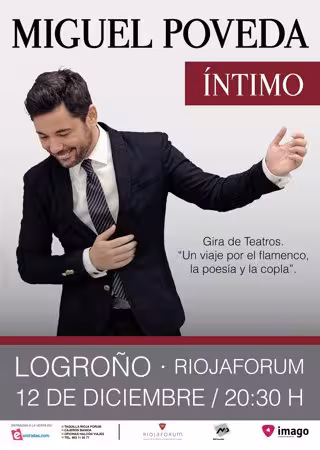 El cantaor Miguel Poveda actuará este viernes 12 de diciembre a las 20,30 horas en el Palacio de Congresos y Auditorio de La Rioja Riojafórum, en Logroño. Una cita ineludible con el flamenco, y con una de sus estrellas del momento, que ofrecerá su nuevo espectáculo 'Íntimo'.