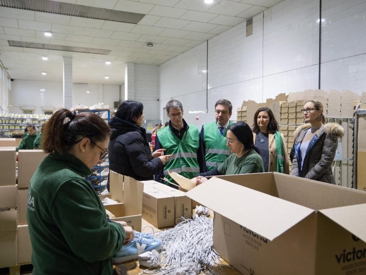 Capellán, junto al consejero de Educación y Empleo, Alberto Galiana, y el presidente de Asprodema, Jesús Maica, entre otros, ha recorrido las instalaciones del centro, en el que trabajan 99 personas, 87 de ellas con discapacidad intelectual.