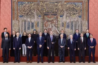 El presidente del Gobierno de La Rioja, Gonzalo Capellán, ha en la reunión del patronato de la Fundación pro Real Academia Española (Fundación pro-RAE), que ha tenido lugar en el Palacio Real de El Pardo, bajo la presidencia de Su Majestad el Rey.