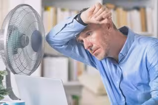 Archivo - Hombre sudando delante del ventilador. - HUMONIA/ISTOCK - Archivo