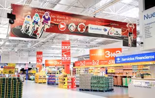 El compromiso de Carrefour con La Vuelta se evidenciará también en los establecimientos. La empresa decorará sus tiendas con carteles y tótems de la prueba y colocará una estructura que emulará el arco de llegada a meta que los ciclistas deben de cruzar en cada etapa de la competición.