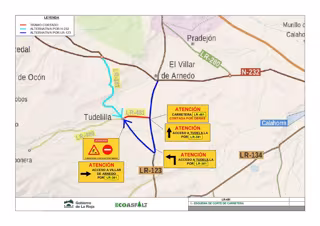 La carretera autonómica LR-481, que conecta la localidad de Tudelilla con la carretera LR-123, permanecerá cortada totalmente al tráfico desde el próximo lunes, día 17, hasta el viernes, día 21, en horario de 8 a 21 horas.
