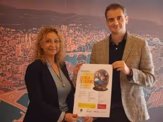 El concejal de Festejos, Miguel Sáinz, acompañado por la presidenta de la Federación de Casas Regionales, Mar Luna, ha presentado 'La Falla de Logroño', unas jornadas de hermanamiento con motivo del X Aniversario de la Casa de la Comunidad Valenciana.