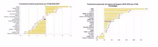 Por el contrario, perderán residentes Andalucía (0,2 por ciento), Aragón (5 por ciento), Asturias (11,1 por ciento), Cantabria (6,3 por ciento), Castilla y León (10,7 por ciento), Castilla La Mancha (6,8 por ciento), Valencia (2,3 por ciento), Extremadura (6,1 por ciento), Galicia (8,5 por ciento), Navarra (0,1 por ciento) y La Rioja (5,1 por ciento), además de Euskadi (3,7 por ciento).