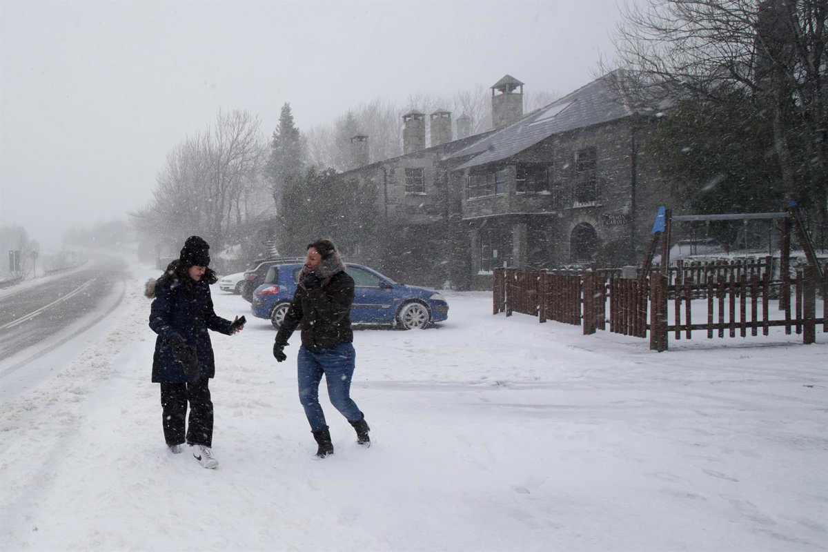 Dos personas caminan por una acera nevada, a 17 de enero de 2023, en Pedrafita do Cebreiro, Lugo, Galicia (España). - Carlos Castro - Europa Press