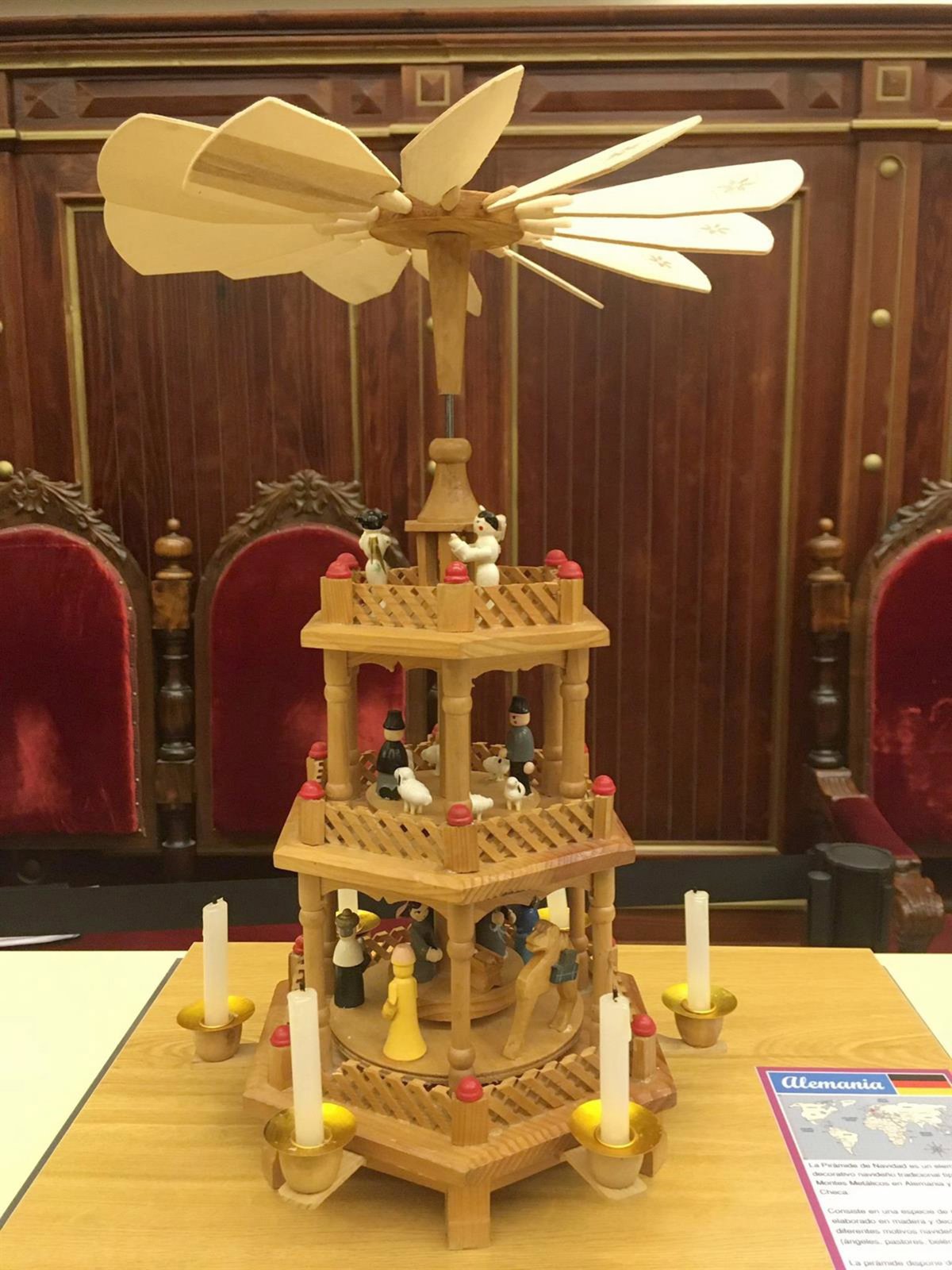 Los belenes se instalan en mesas creadas ex profeso, con bases individuales y protegidos, cada uno, con una urna en la que añade una cartela informativa con la procedencia, material con qué está elaborado, el nombre de la entidad o persona donante, etc.