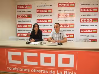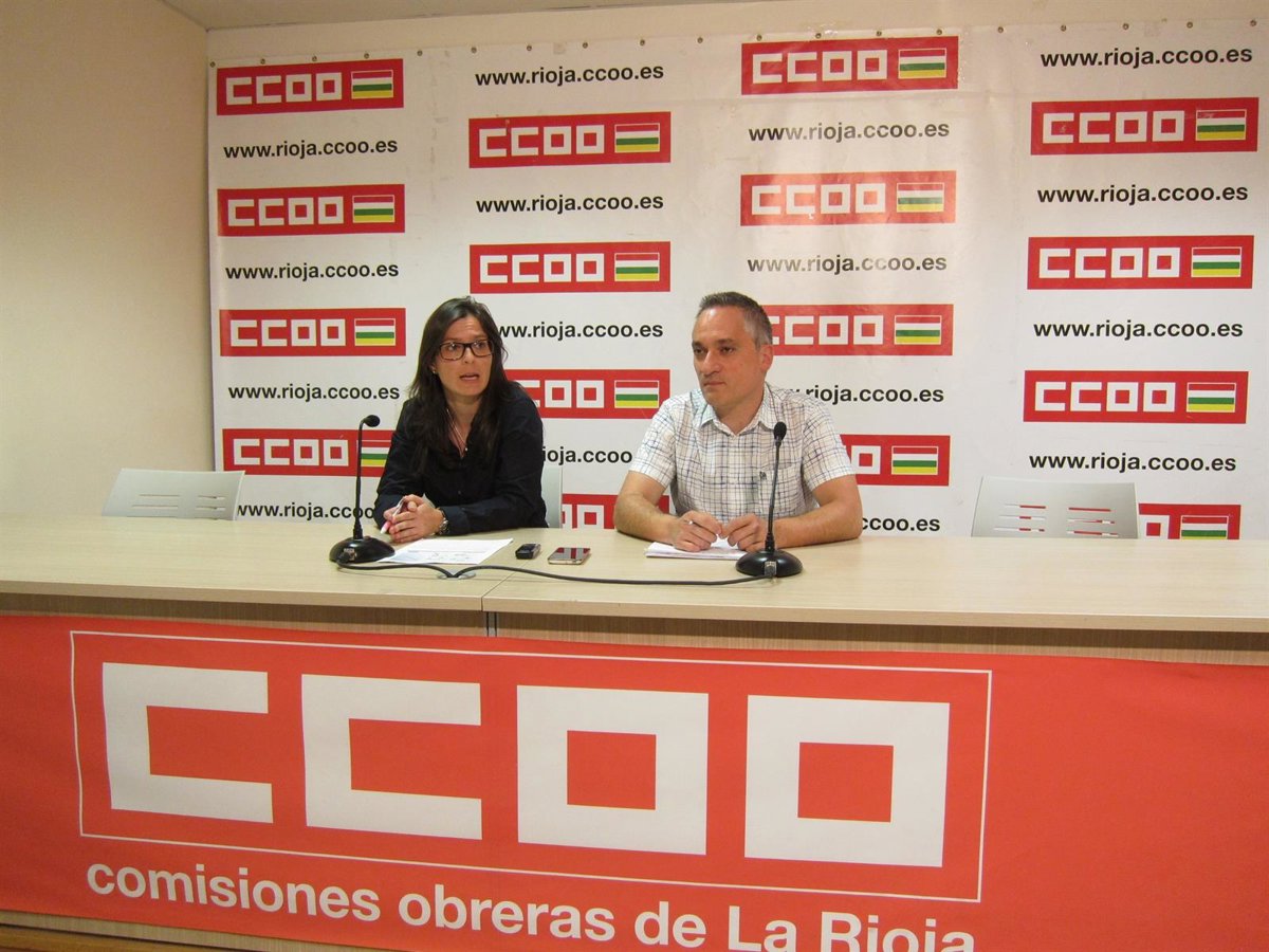 Rodero ha comparecido ante los medios de comunicación, acompañada del secretario general de CCOO La Rioja, Jorge Ruano, en el descanso de la jornada sindical 'Brecha salarial, derechos y negociación', que está desarrollando el sindicato.