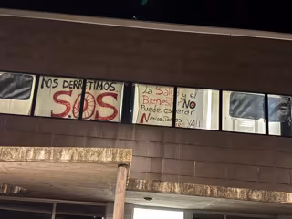 Sábanas en el Centro de Salud de Albelda denunciando la situación - CSIF