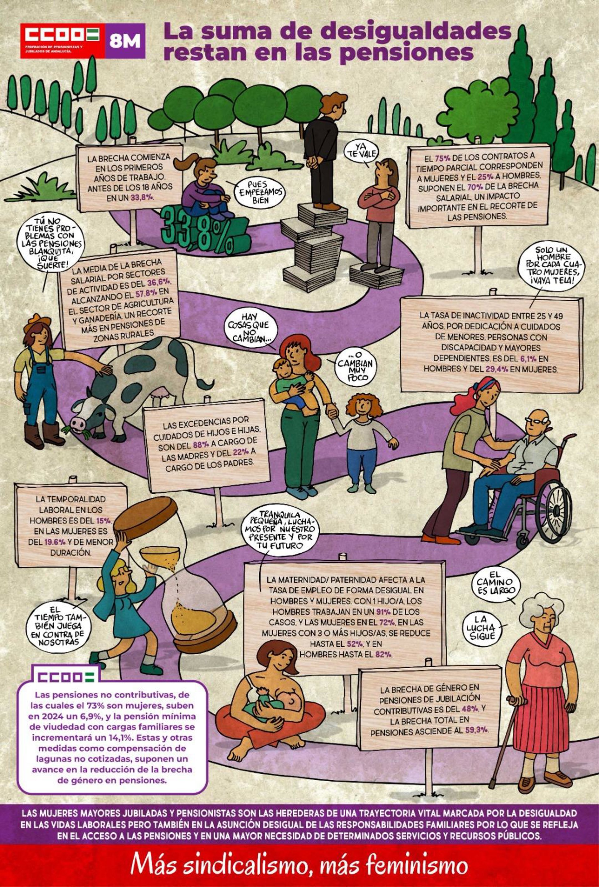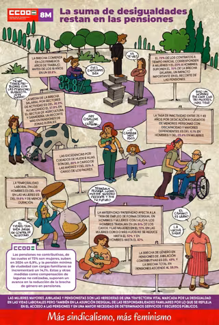 "Seguimos siendo las que copamos las cotas de precariedad, de temporalidad, las que conciliamos, las que cogemos en nuestras excedencias para cuidados, lo mismo de menores que de personas dependientes", ha clamado.