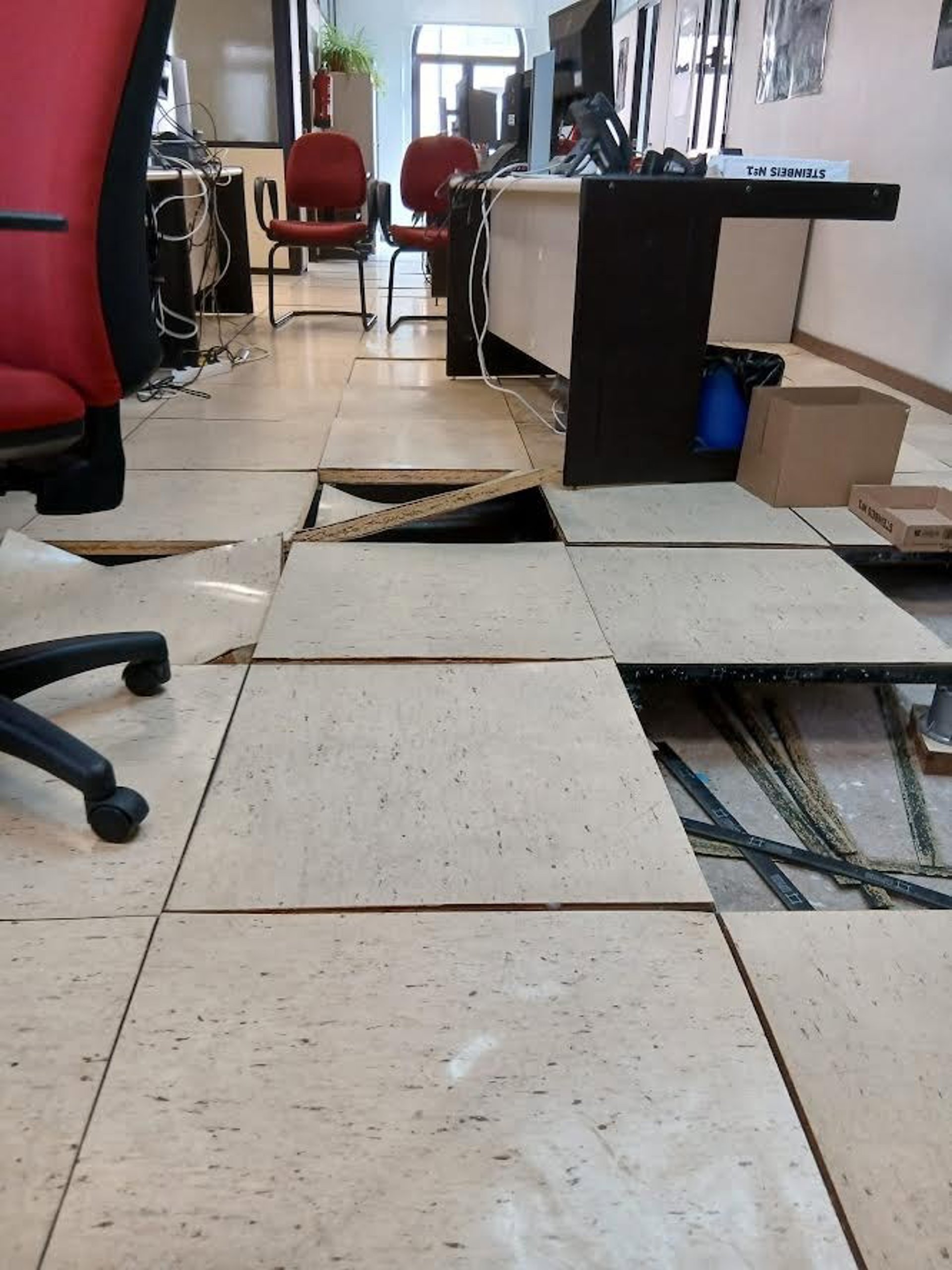 "No solo nos estamos asfixiando con los productos que usan para el moho, es que además tenemos miedo de dar un paso y que el suelo se parta bajo nuestros pies. Hay agujeros de 30 centímetros y nadie ha acordonado las zonas peligrosas", critican desde el colectivo.