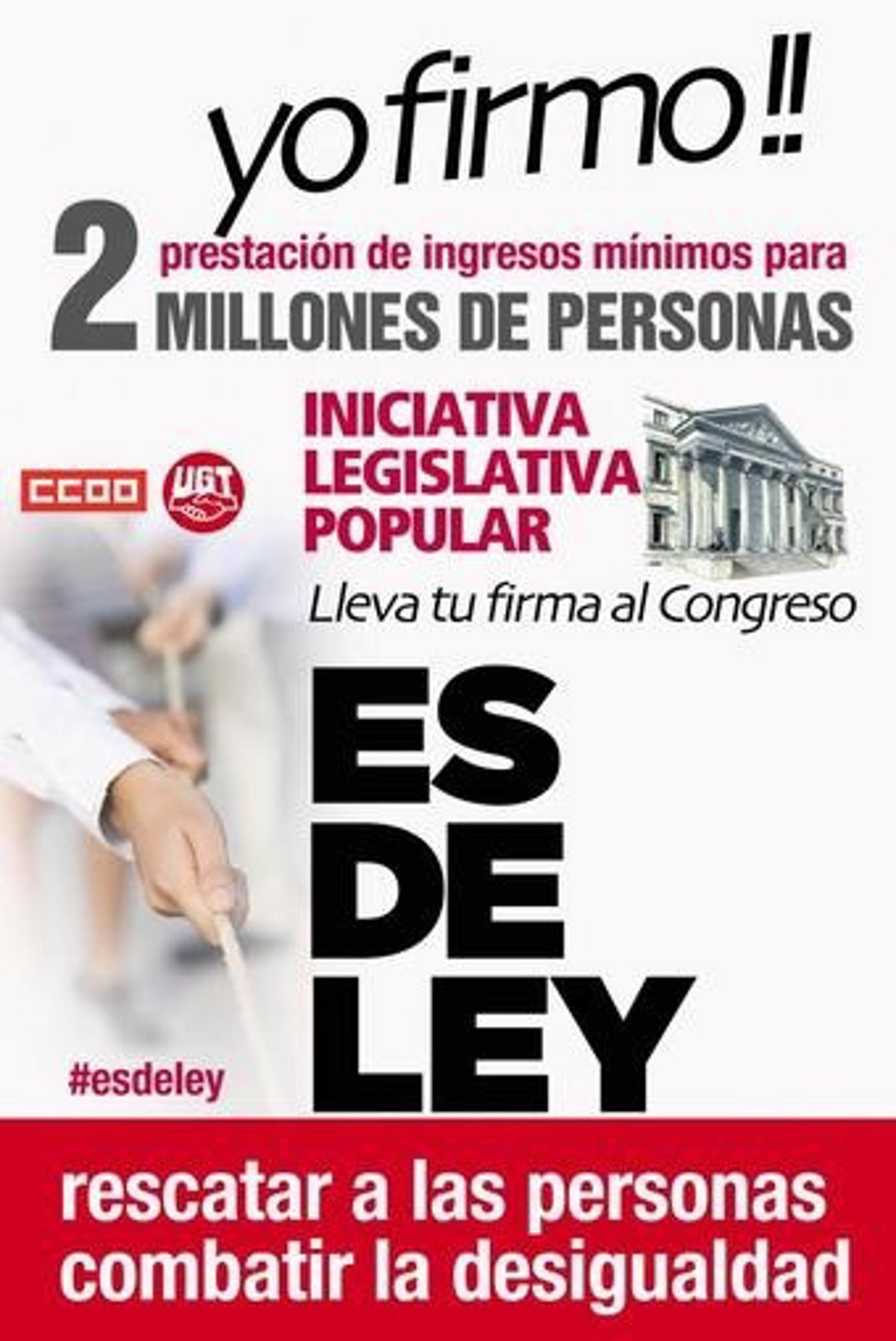 La iniciativa legislativa popular, que se difunde en twitter con el hashtag #esdeley, busca, tal y como ha explicado Ruano, establecer una renta mínima de 426 euros para todas aquellas personas "en situación de desprotección" porque han perdido su prestación por desempleo.