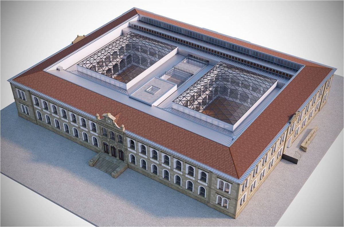 Los dos patios interiores se cubrirán para minimizar el exceso de sol en el interior del edificio en determinadas épocas y horarios, y generar espacios de recreo que podrán utilizarse durante todo el año. La escalera imperial se recuperará para dar servicio a los espacios emblemáticos, al tiempo que se creará una nueva junto al vestíbulo y acceso sur para minimizar los recorridos de los alumnos por el interior del edificio.