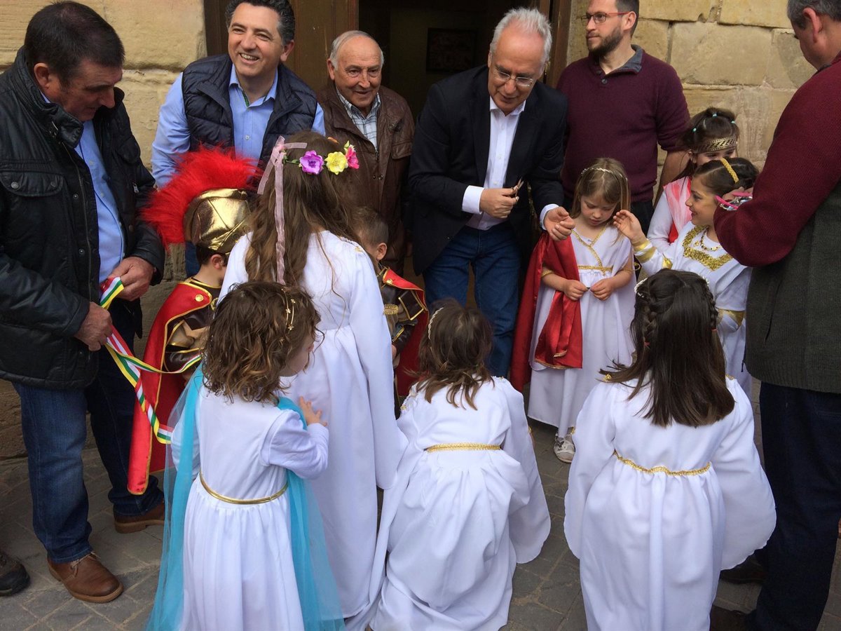 En la inauguración del I Mercado Romano de Tricio, José Ignacio Ceniceros ha estado acompañado por el consejero de Fomento y Política Territorial, Carlos Cuevas; el alcalde de Tricio, Carlos Benito, y miembros de la Asociación Virgen de los Arcos.