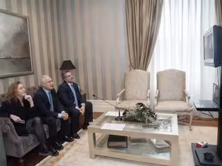 A través de la videoconferencia, el presidente del Gobierno de La Rioja y la consejera de Presidencia, Relaciones Institucionales y Acción Exterior, Begoña Martínez Arregui, han hablado con los presidentes del Centro Riojano Español de Buenos Aires y Rosario, Ambrosio Romero y Juan Luis Martínez, respectivamente, y del Centro Riojano Español de Santiago de Chile, Jerónimo Sáenz Laguna, así como con miembros de las juntas directivas de dichas entidades.