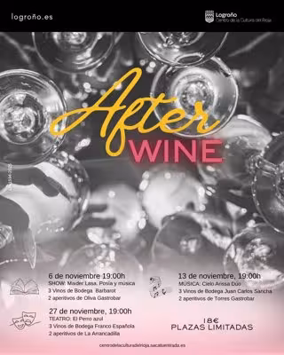 Y por último, el jueves 27 de noviembre After Wine llega con vinos de la Bodega Franco Españolas, una propuesta gastronómica de La Arrancadilla y la obra de teatro El perro azul, de Fernando Moreno.