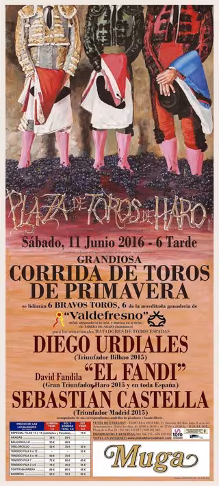 José Uríszar es, además, el autor del cuadro que sirve de base para el cartel de la corrida de primavera que se celebrará en Haro el sábado, 11 de junio, en la cual se lidiarán seis toros de Valdefresno para los diestros Diego Urdiales, 'El Fandi' y Sebastián Castella.