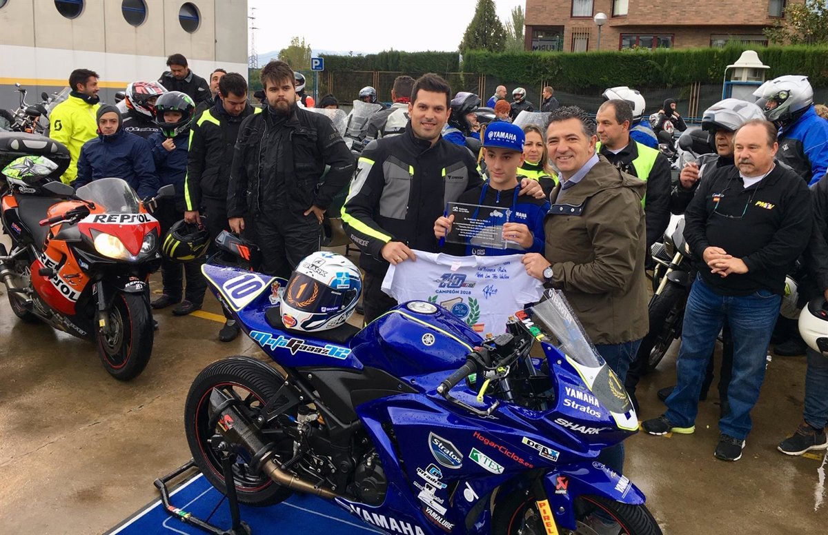 Previamente a la salida, se ha rendido homenaje al joven piloto alfareño Unai Orradre por su reciente triunfo en el campeonato de motociclismo Yamaha R3 bLU cRU Challenge 2018, quien además apadrina la ruta.