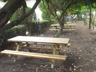 En la zona junto al parque se han realizado limpiezas, desbroces y tratamientos de clareo y poda para el saneamiento de la cobertura vegetal y se ha instalado un columpio, un balancín infantil, bancos y mesas de madera.