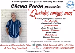 El cantautor riojano Chema Purón, junto con siete cantantes y dos coros, ofrecerá el próximo sábado 23 de febrero el espectáculo 'Queridos amigos míos', un concierto a beneficio del Banco de Alimentos de La Rioja que, como ha dicho el propio artista a Europa Press, "va a ser diferente y único".